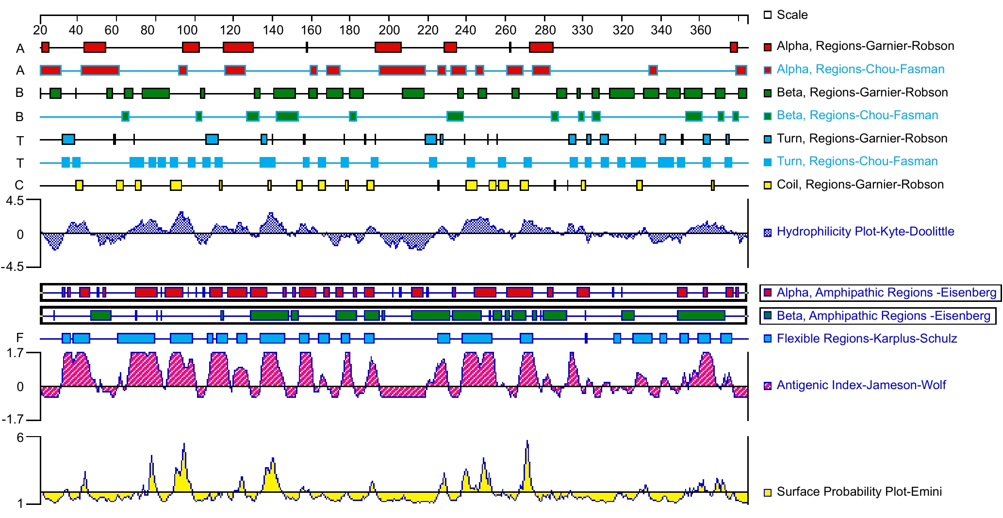 Figure 1 Bioinformatics analysis of secondary structure and antigenic epitopes of inhibin α-subunit based on DNAStar
