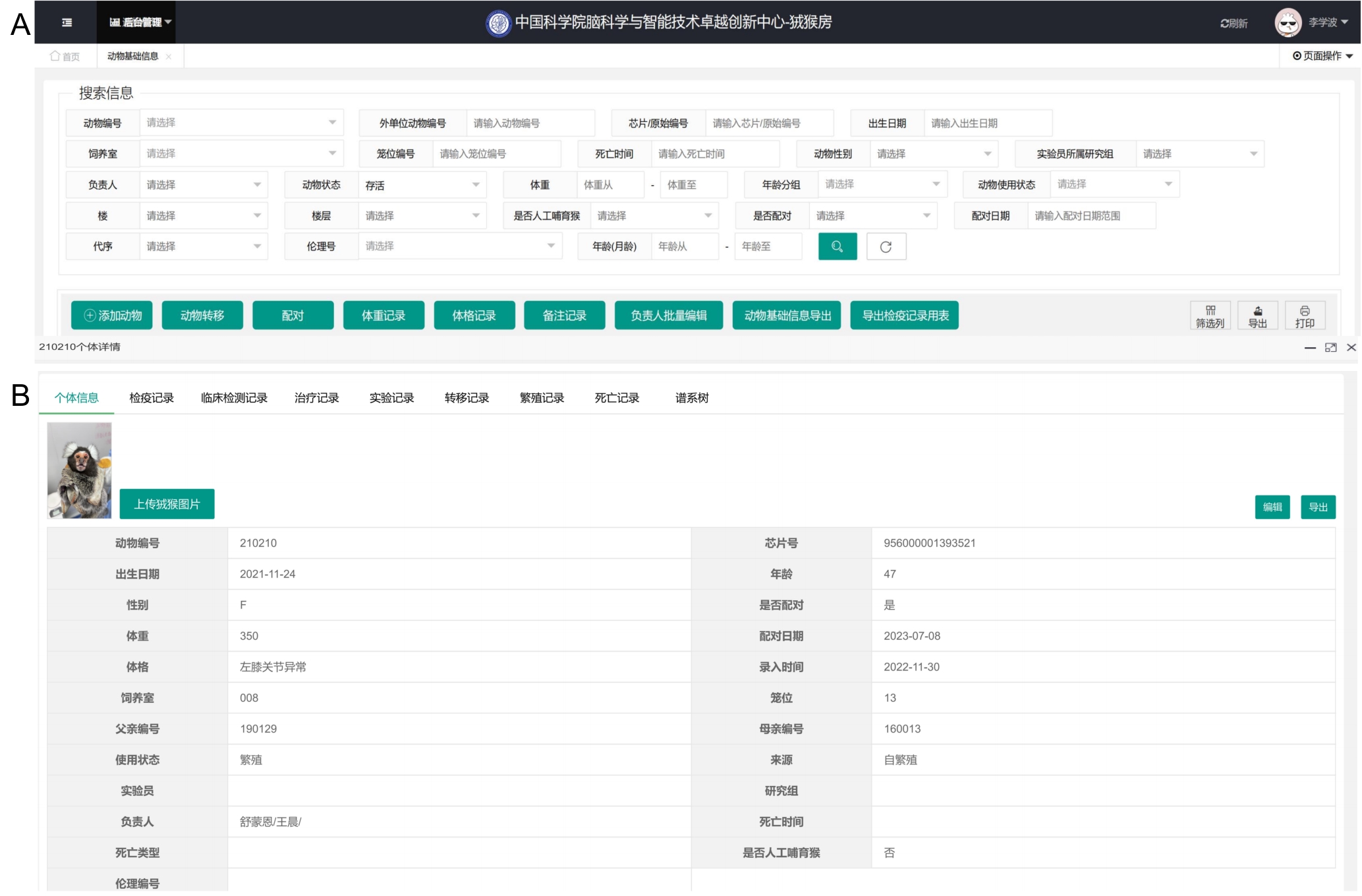 Design and Application of an Information Management System for Experimental Marmosets