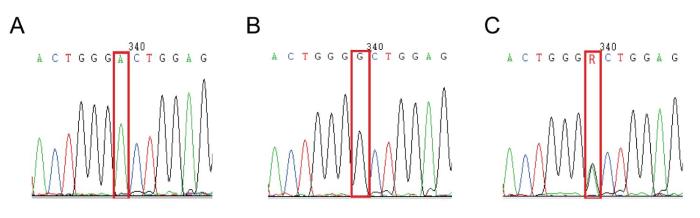 Single nucleotide polymorphism (SNP) peak plot in the coding sequence region of TYR gene exon Ⅰ in guinea pigs