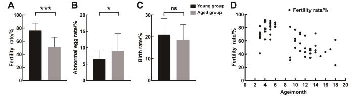 实验结果数据经Excel 2016软件整理,数据用均数±标准差表示,并以GraphPad Prism 8软件绘图。采用SPSS 16.0统计软件对结果进行单因素方差分析(ANOVA检验)和t检验,以P<0.05表示差异有统计学意义。采用SPSS 16.0中相关性分析程序,分析小鼠年龄与IVF受精率之间的关系,通过Pearson相关系数检验进行验证。当P<0.05时,为相关性显著;当P<0.01时,为相关性极显著。