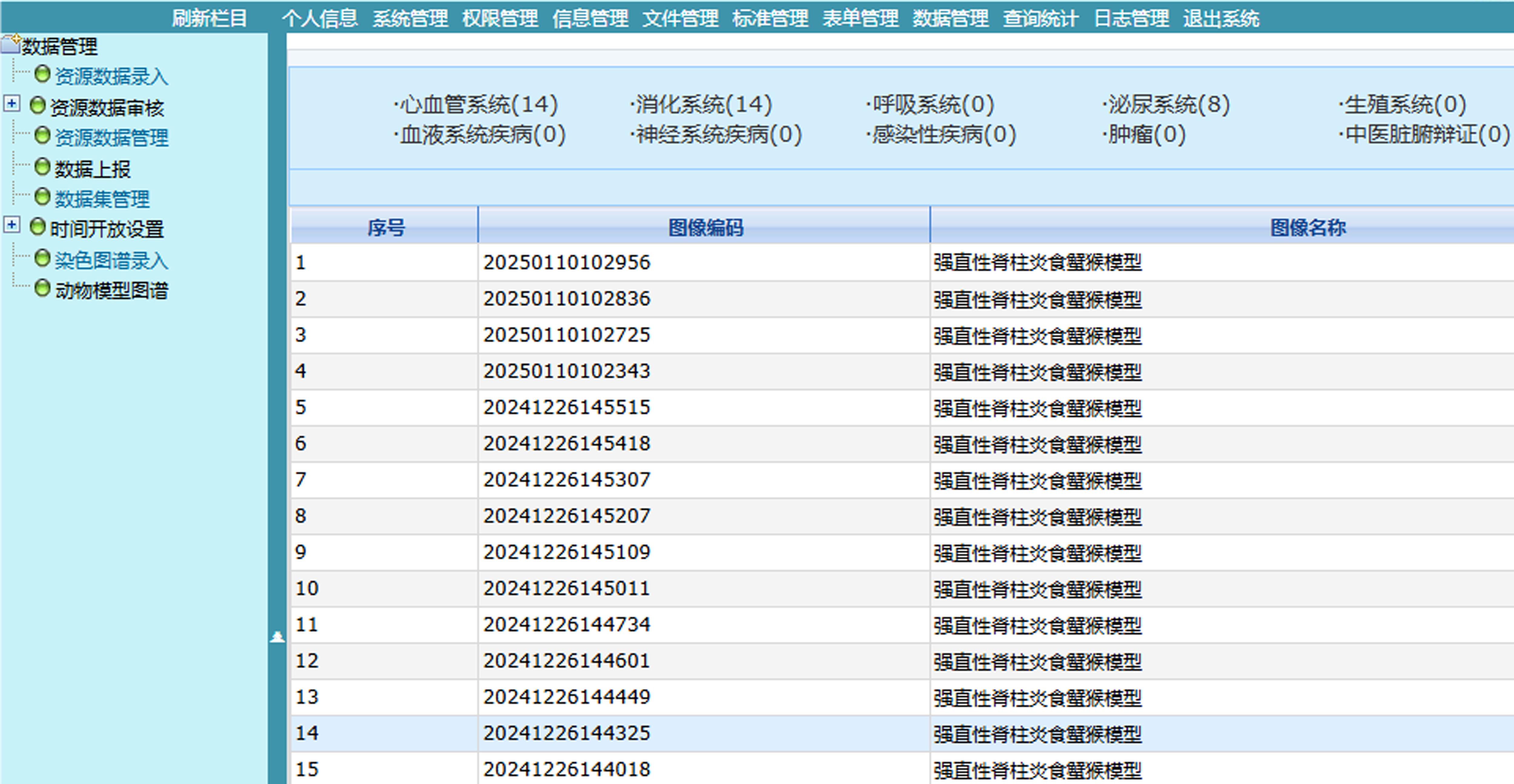 | Figure 4 Data management backend interface of animal model digital atlas database platform |