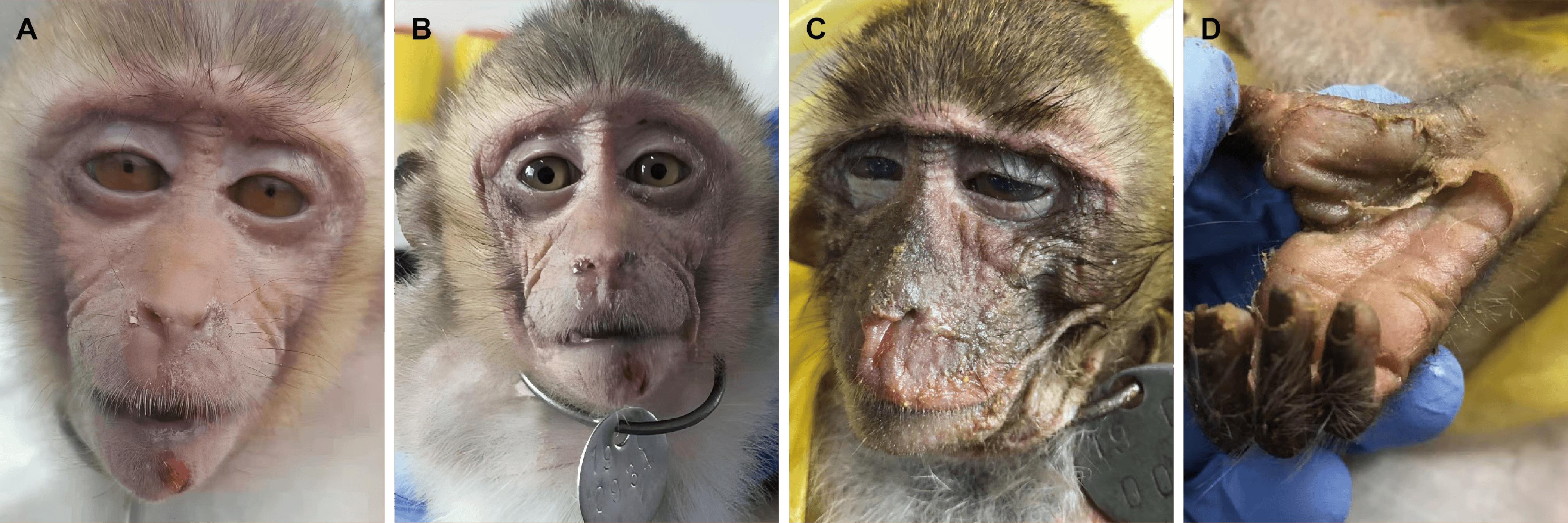 | Figure 1 Clinical symptoms of the infected cynomolgus monkeys |